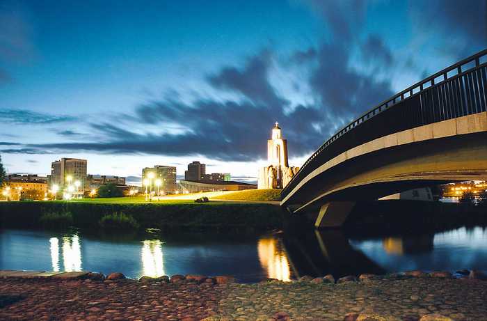 Проспект Ф. Скарины, Остров Слез, река Свислочь, Троицкое Предместье, ночной Минск зимой.
